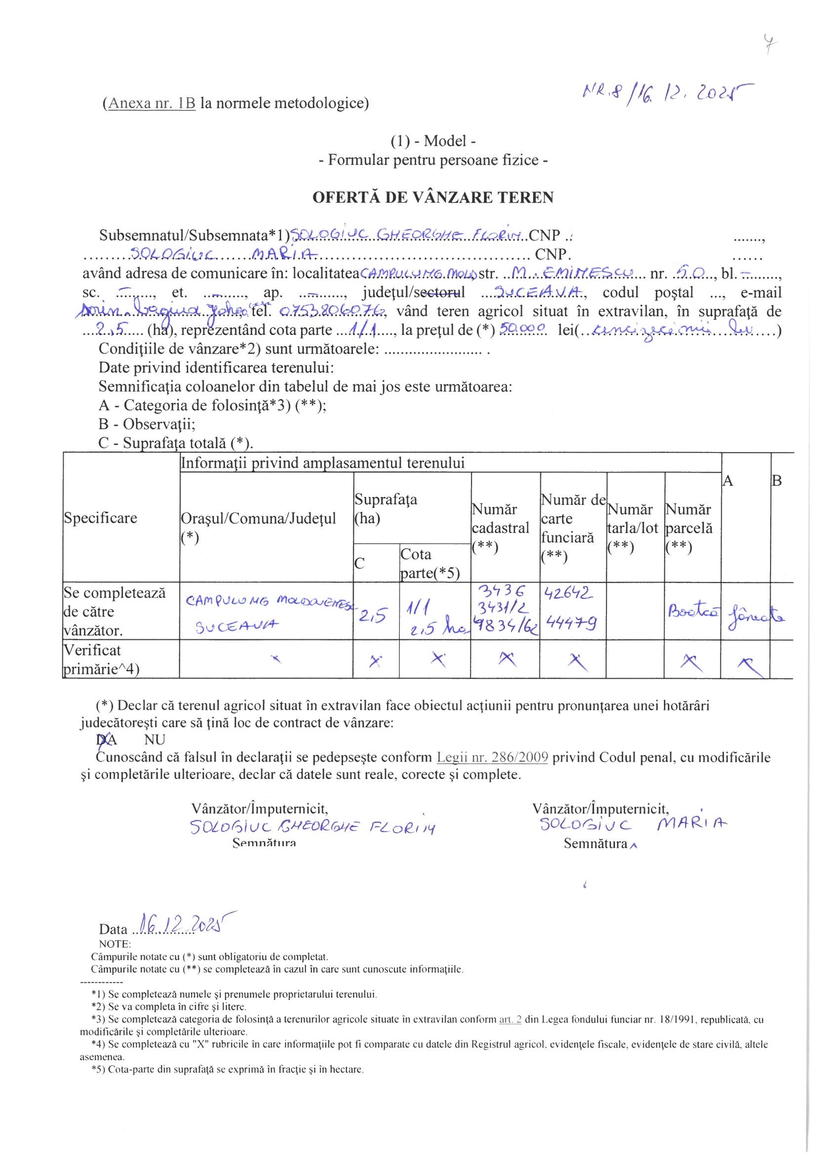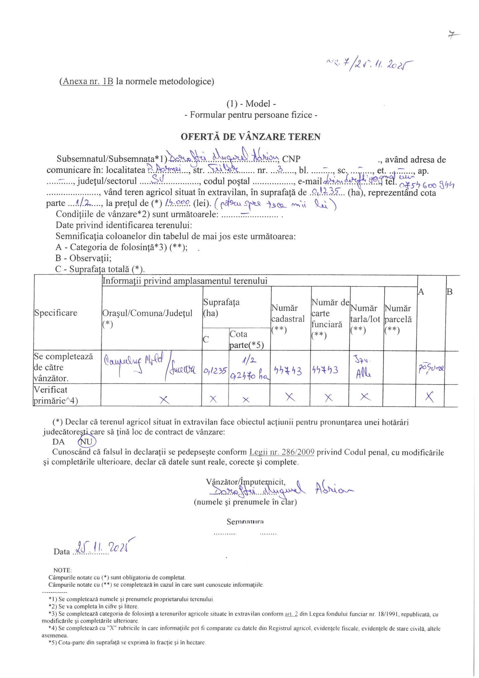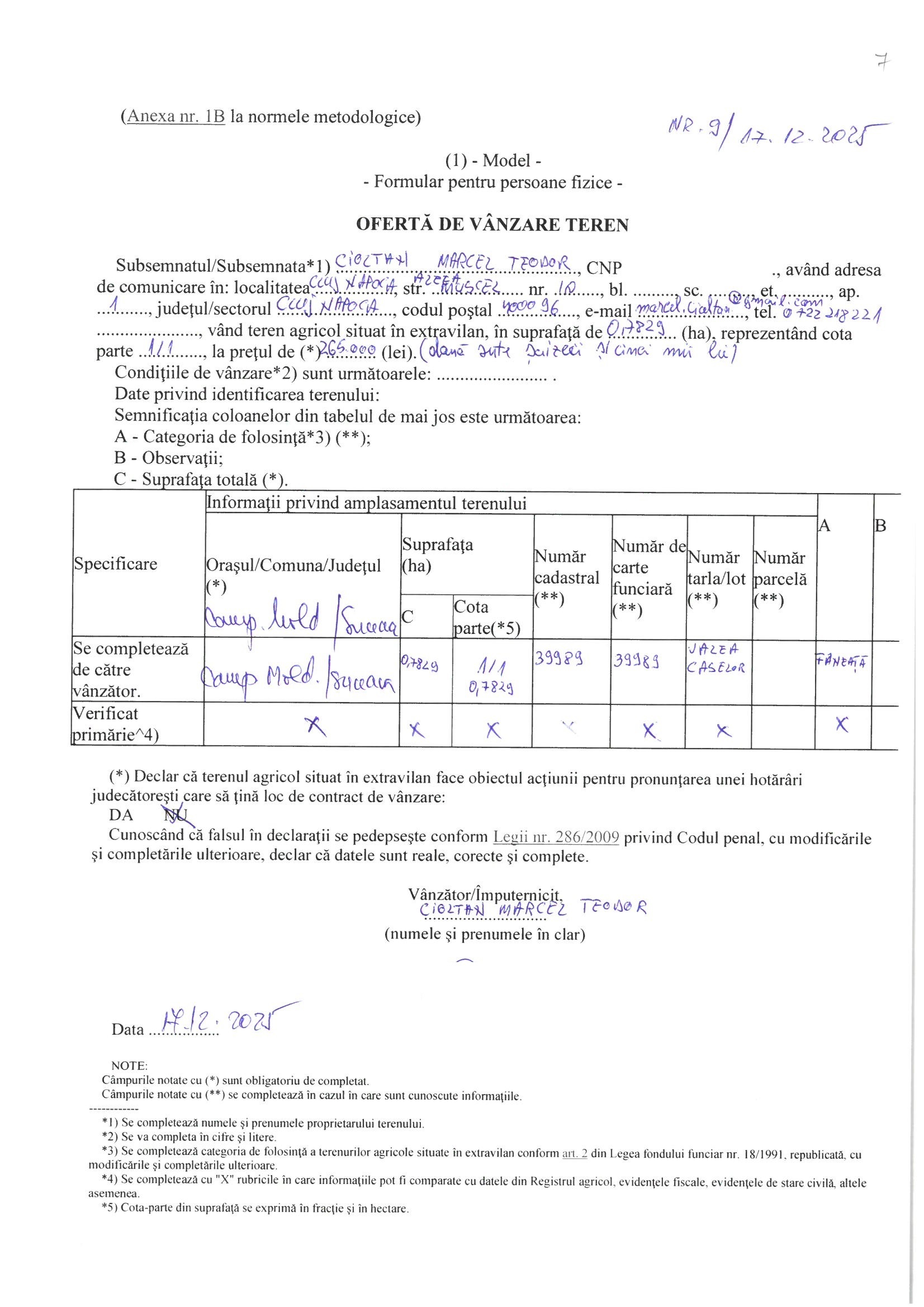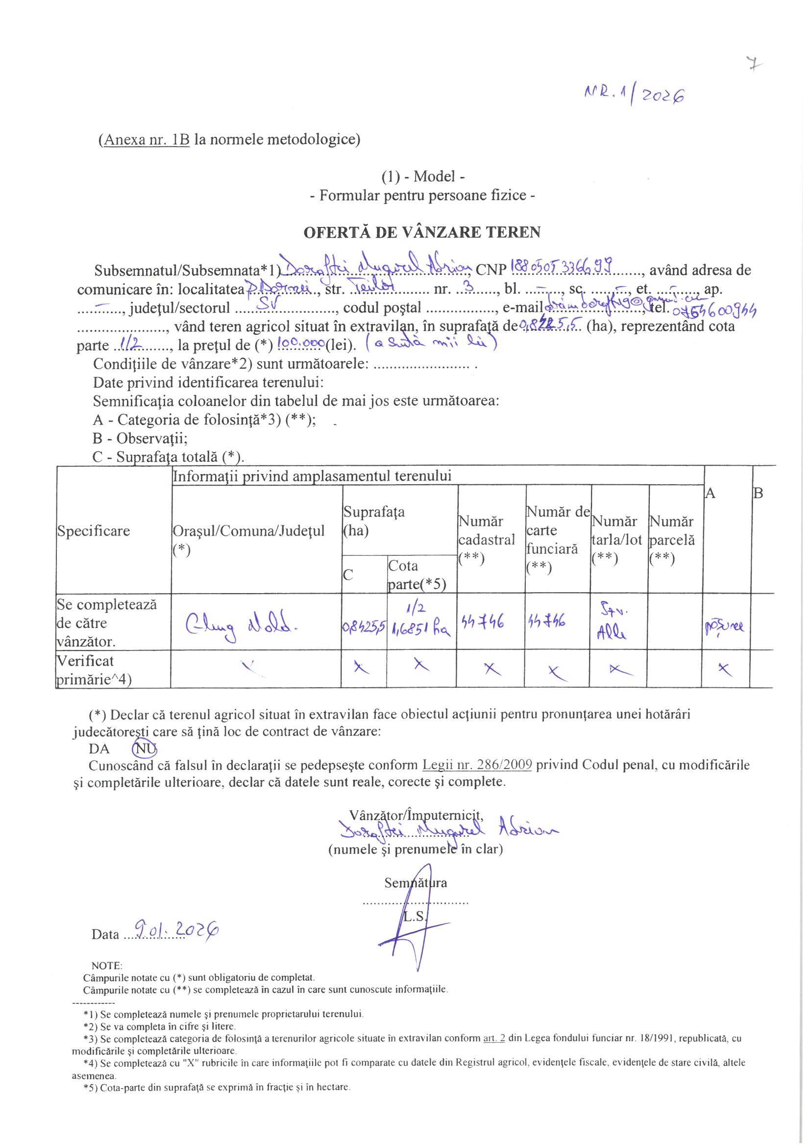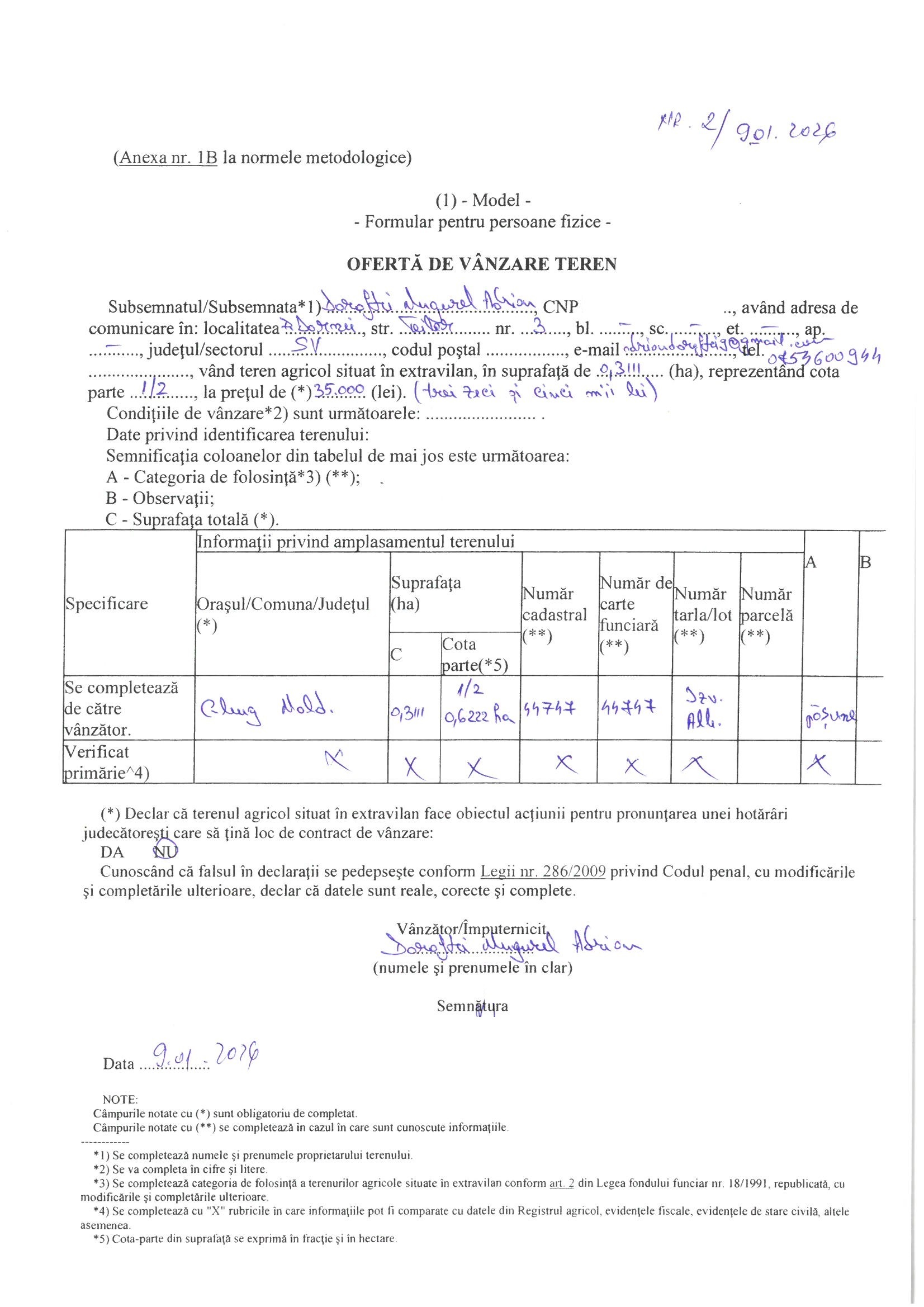 Registrul de evidenta a ofertelor de vanzare a terenurilor agricole situate in extravilan - Legea nr. 17/2014
